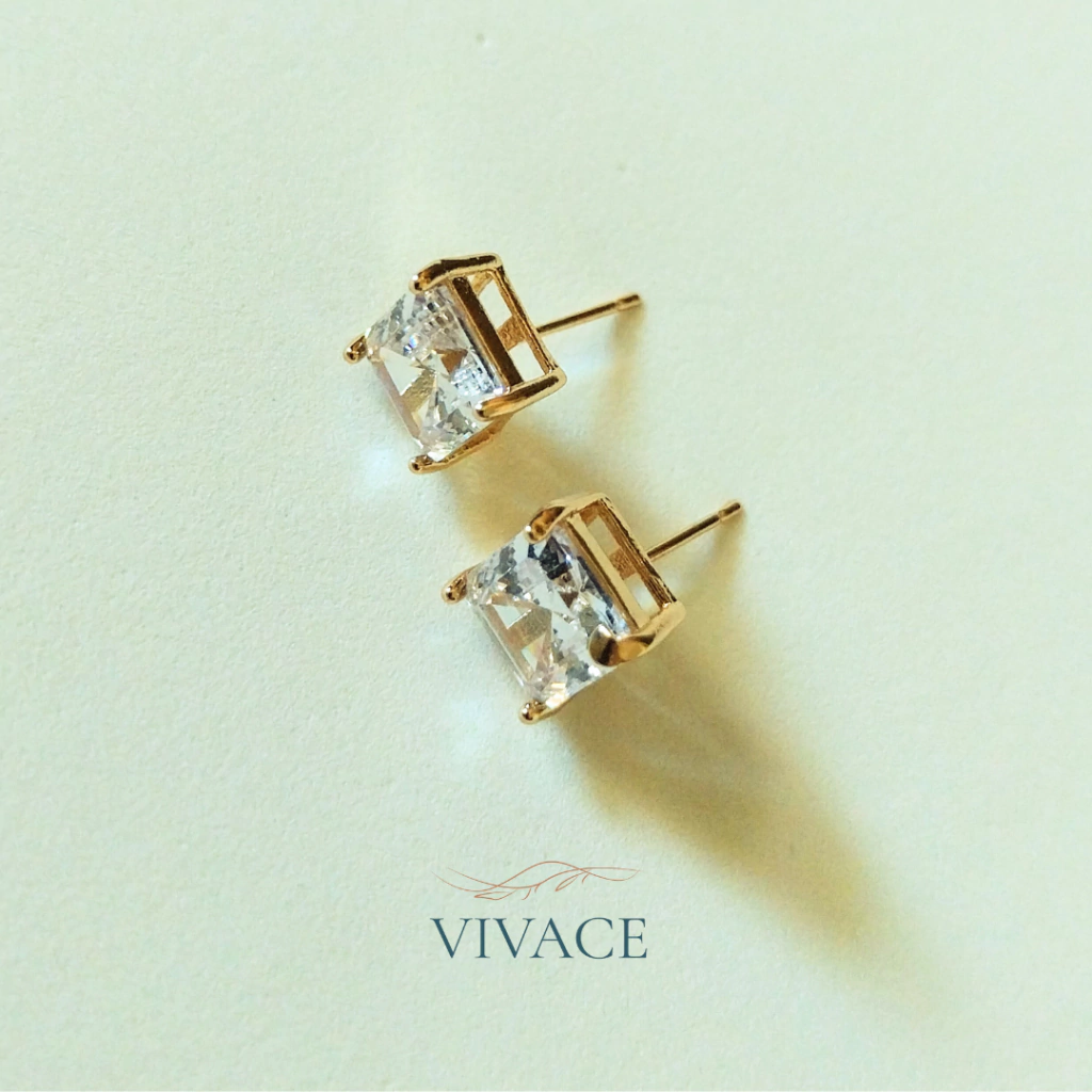 * Brinco Ponto de Luz com Zircônia Quadrada – Folheado em Ouro 18k *